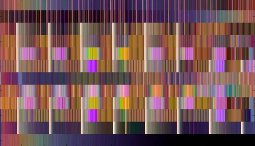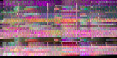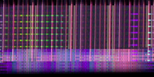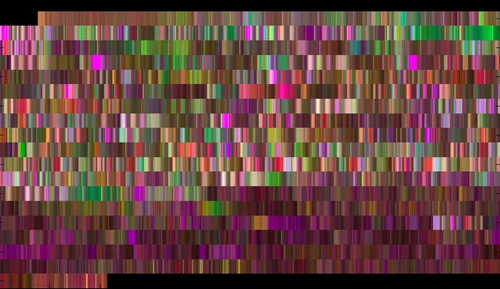 These images are made using a natural algorithm for turning pitch into colour, and are the visualisations of songs from a range of genres. The first image is 'simple things' by Massive Attack, for example, the second from Ott's amazing album Mir.