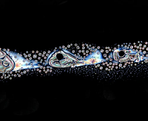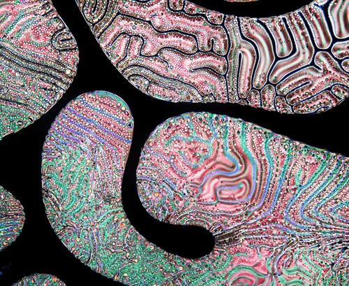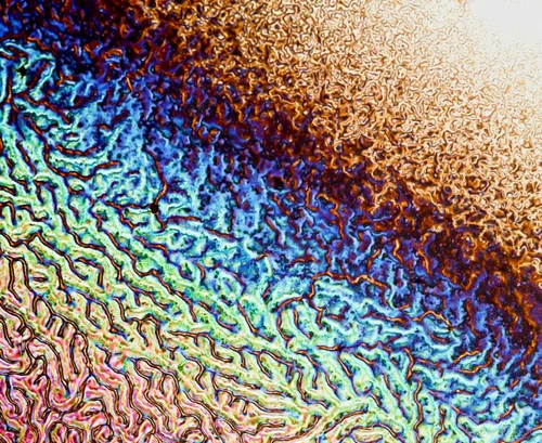 Some additional older photos can be found at my liquid crystal flickr page here. I have also put up my entire unsorted collection of liquid crystal photos from my PhD research time, so that anyone can use them, for example, for textures for 3D objects, creatures and environments, art projects, illustrations, etc. Here is a demo of their use in 3D environments.